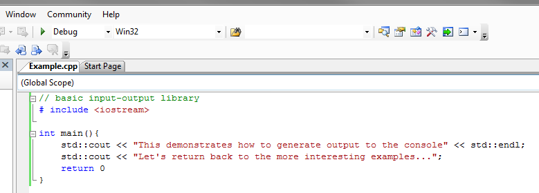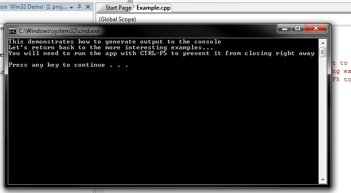 Generally, one builds a debug version of the application (to allow for debugging and tracing) and, later, a release version of the application that is more optimal. Clicking the green arrow will build the application, open and (in this case) close the app. To prevent the app from closing right away, enter CTRL+F5 instead.